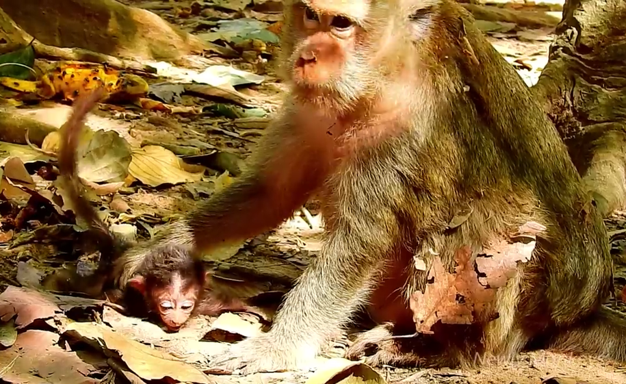 The morning light filtered softly through the ancient trees of Angkor Wat, the kind of quiet that makes you hold your breath without knowing why. That’s when we saw her — Dalton’s mother, still and watchful, cradling her tiny newborn against her chest.