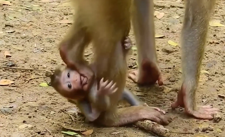A mother monkey sits on a low branch, holding her position with quiet patience. Her baby stays close at first, reaching out instinctively, but something has changed in the rhythm between them. Instead of pulling the baby closer, she gently shifts just a little farther along the branch.