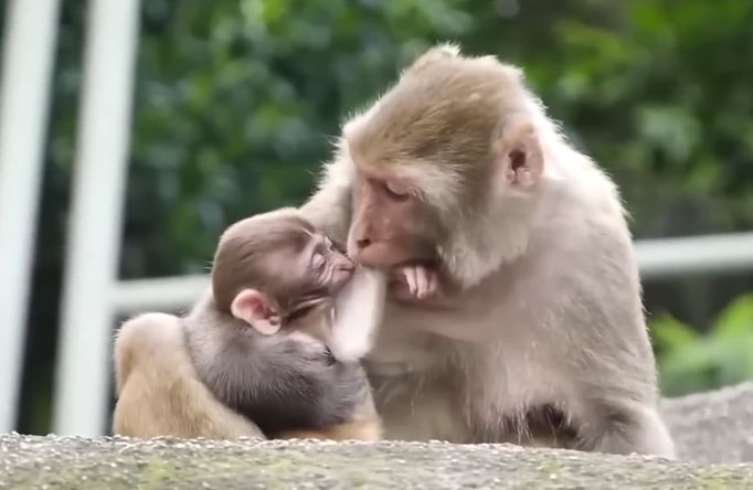 A small baby monkey stayed slightly apart from the group, watching rather than joining. Its movements were careful, almost uncertain, as if learning the rhythm of the forest one moment at a time.
