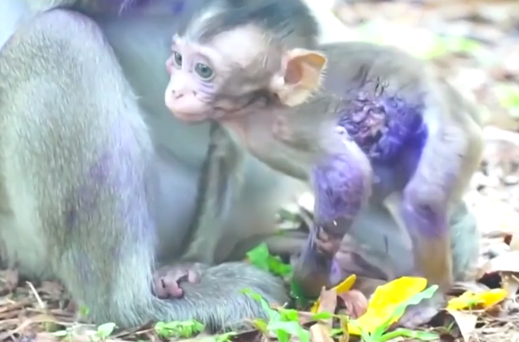 A larger monkey glanced back briefly, then continued on. The little one tried again, stepping forward, then stopping as if reconsidering each movement. It wasn’t fear. It was limitation.