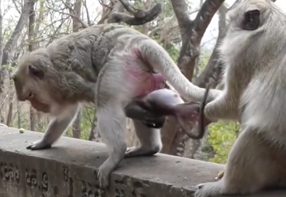 The approaching monkey reached forward—not aggressively, but with a persistence that felt out of place. The baby let out a soft call, more confusion than fear.