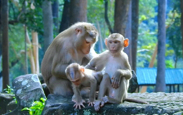 The troop settled near the roots of a large ancient tree. The evening air felt softer there, cooler, almost sacred. Luna sat down gently, her muscles tired from a long day of protecting her baby and gathering food. She stretched her arms and closed her eyes as if she finally felt safe enough to rest.
