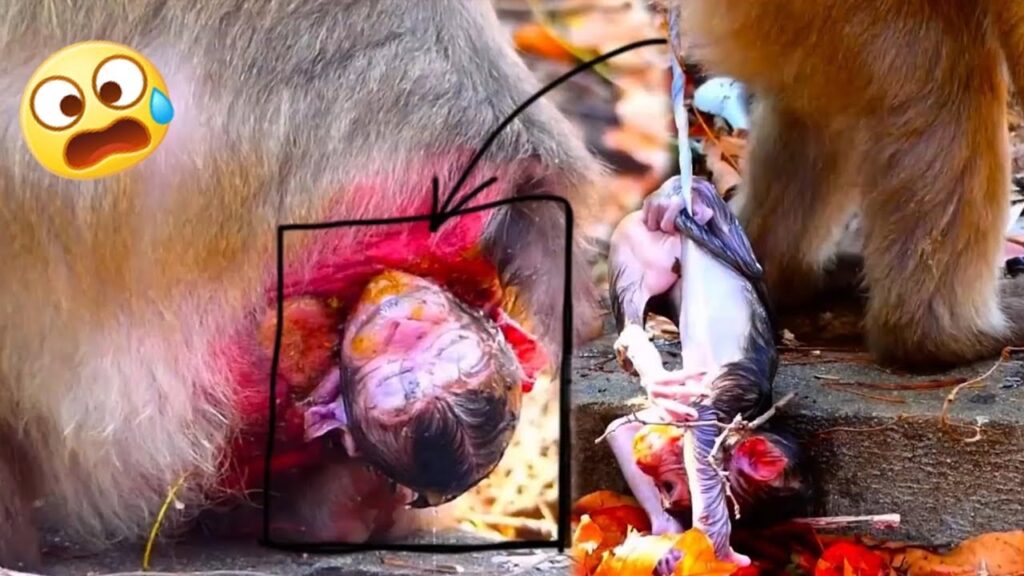 On this morning, the story lay at the base of a tree. A newborn monkey, barely hours old, rested where fallen leaves collected. Its movements were small, uncertain—more reflex than intention.