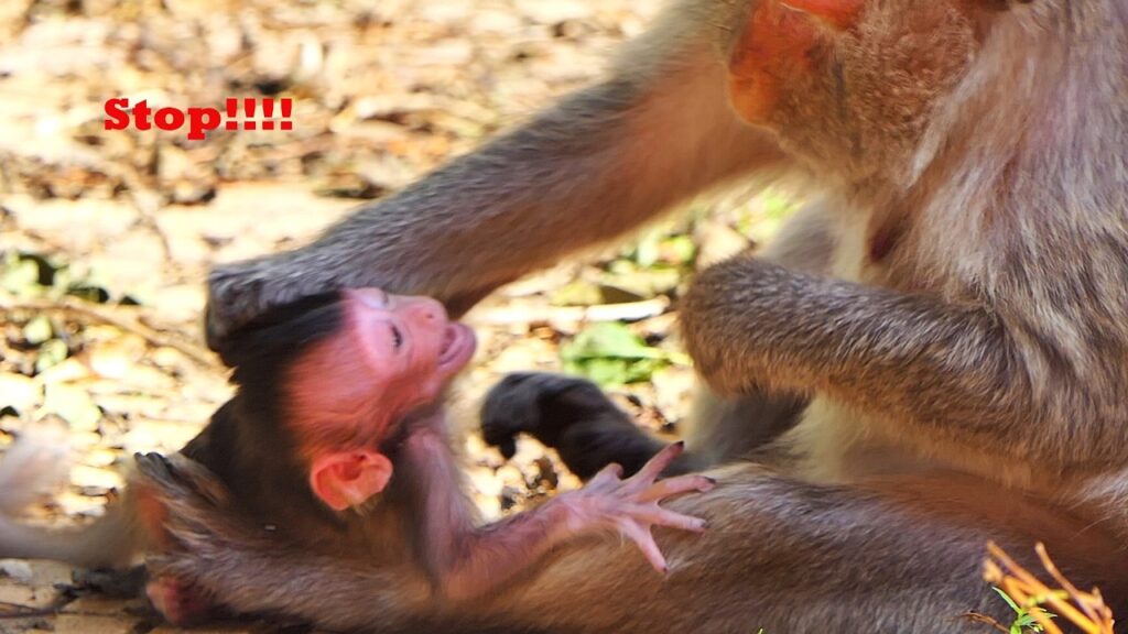 For a moment the little one struggles slightly, trying to find the right position. The mother adjusts her posture just enough to help, lifting one arm to cradle the baby more securely. It’s a small movement, but it reveals a powerful instinct—one that has guided generations of wildlife through the earliest stages of life.