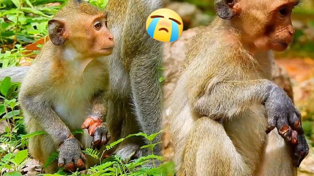 The morning light moved slowly through the Angkor forest, touching stone ruins and low branches before settling on a young monkey perched near his mother. At first glance, everything looked ordinary. But then he shifted, and his small hand stayed tucked close to his chest.