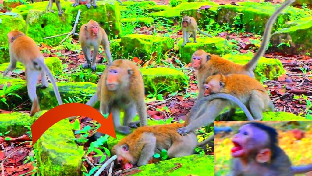High in the trees, a young monkey clung tightly to a narrow branch. His tiny fingers wrapped around the bark with a grip that looked more desperate than playful. Below him, older members of the troop shifted positions, their movements tense but controlled.