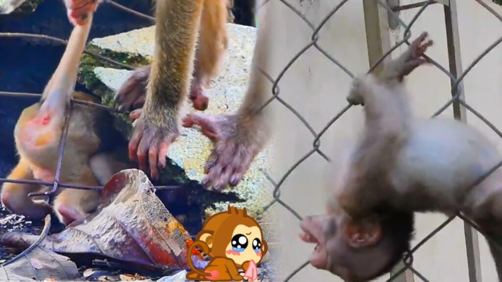 The wire mesh beneath the fence had shifted just enough. One small leg slid through, then another, and suddenly the infant was caught — not crying, just confused, pressing its tiny hands against the metal. The mother reacted instantly. She rushed forward, reaching, pulling, trying to lift her baby free.