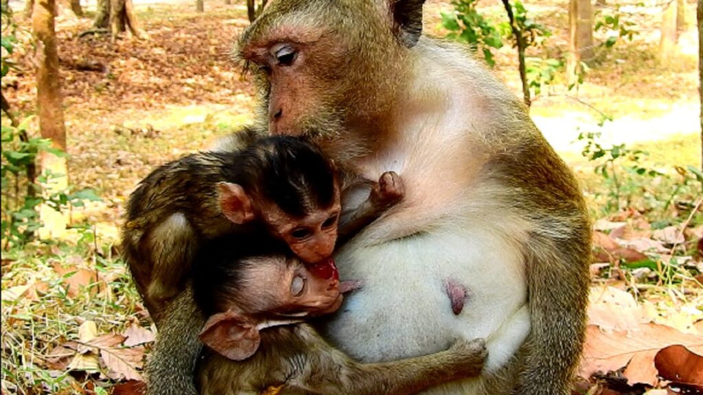 The little one seemed determined. It adjusted its position again, almost sliding sideways in its effort to latch. For a moment, it looked awkward—tiny legs kicking slightly as it tried to find balance.